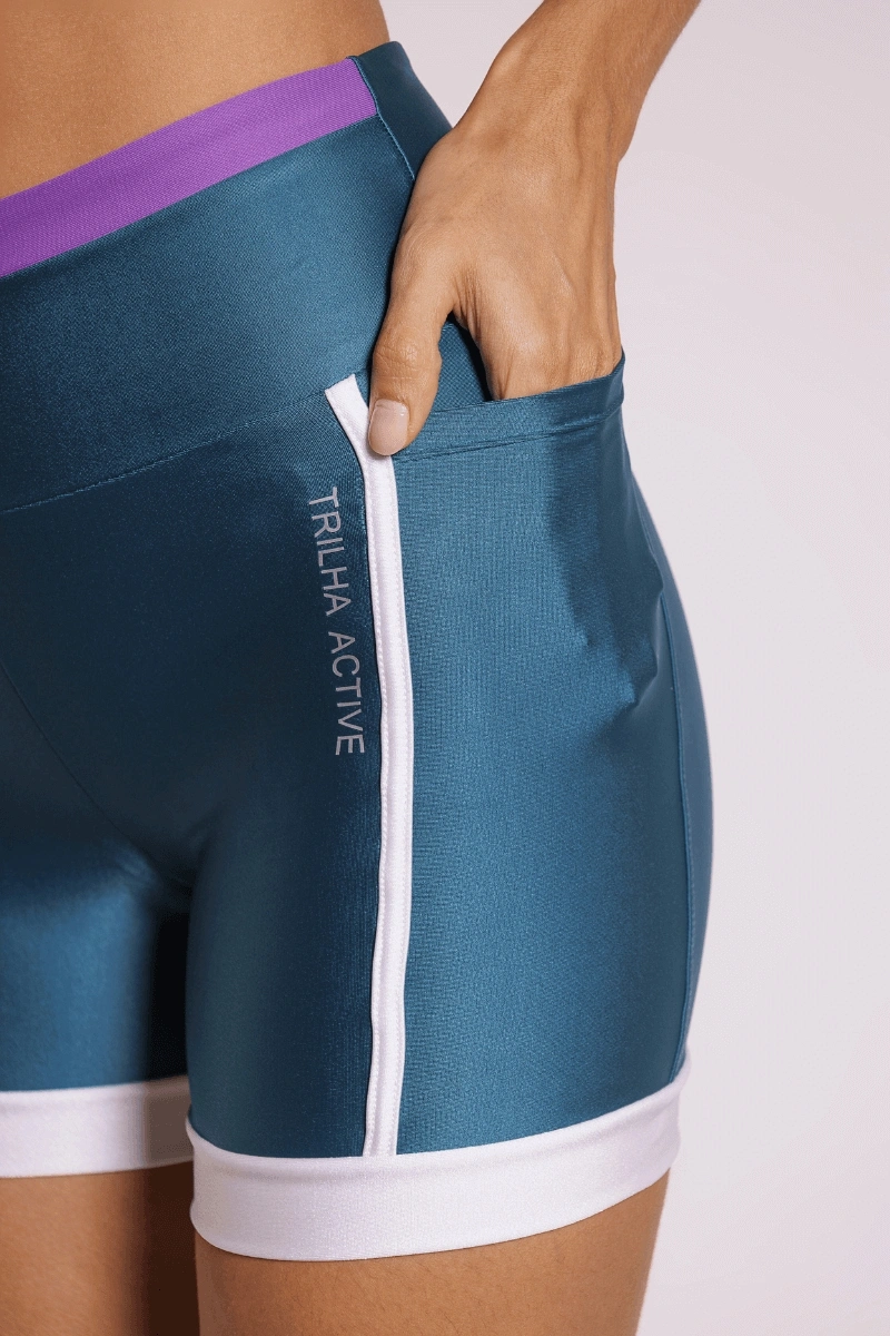 Shorts com bolso lateral e transfer exclusivo TRILHA ACTIVE na lateral.