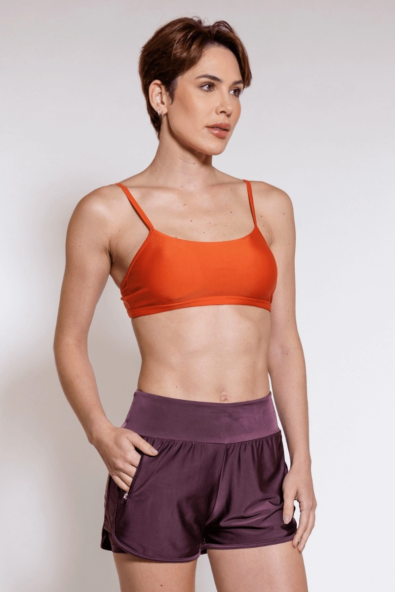 Shorts desportivo feminino estilo corrida, com bolso lateral com fecho, perfeito para guardar pequenos objetos durante o treino. Inclui short interno, oferecendo conforto e liberdade de movimento em qualquer tipo de exercício.